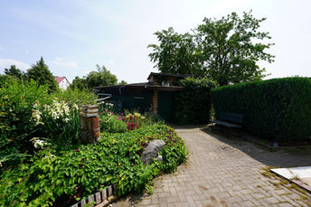 Eingeschossiges, voll unterkellertes EFH mit ausgebautem Dachgeschoss, großer Garten mit Brunnen und überdachte Terrasse sowie Stallgebäude. Das Haus macht ein gepflegten Eindruck, lediglich der Garten muss mit etwas Fleiß wieder zu seiner alten Pracht verholfen werden.